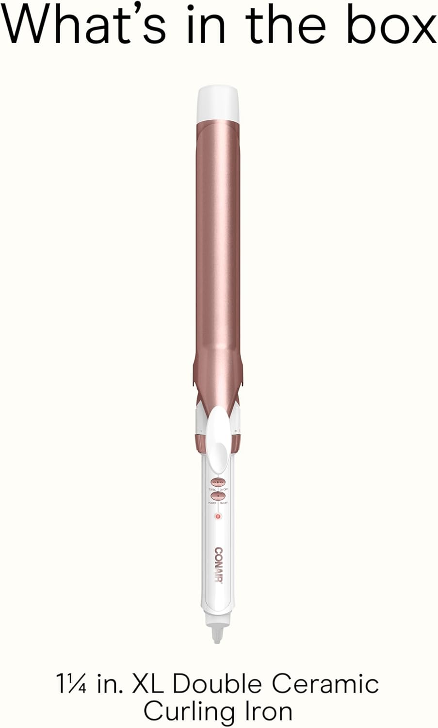 13 reviews for Conair Double Ceramic 1 1/4-Inch Curling Iron, 1-1/4 Inch Extra-Long Barrel Hair Curling Iron, 30 Heat Settings, Turbo Heat, Auto Off, Cool Tip, Dual Voltage, Rose Gold